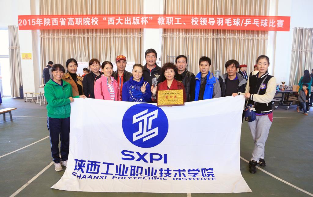 ,2015年陕西省高职院校“西大出版杯”教职工、校领导羽毛球/乒乓球比赛在西安航空职业技术学院举行。我院党委书记崔岩,党委副书记、纪委书记刘永亮等7人组成的校领导队和羽毛球协会张绪绪、吕宏、张辉、宋群芳等14人组成的教职工队参加了相应组别的比赛。经过两个阶段的奋力拼搏,夺得教职工组第四名和校领导组第五名的好成绩,代表队领队、工会主席刘文青代表学院领奖。
