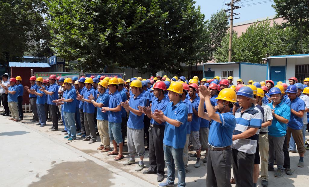陕西三建集团副总经理黎晓东代表建设单位发言,他说:省教育工会和陕西工院领导的关怀和慰问,就像夏日的徐徐凉风,让大家倍感舒畅,三建集团一定不辜负组织期望,严把工程质量关和安全关,顺利完成陕西工院工程技术训练中心大楼暑期施工任务,以优质工程为陕西工院的建设发展贡献自己的力量。