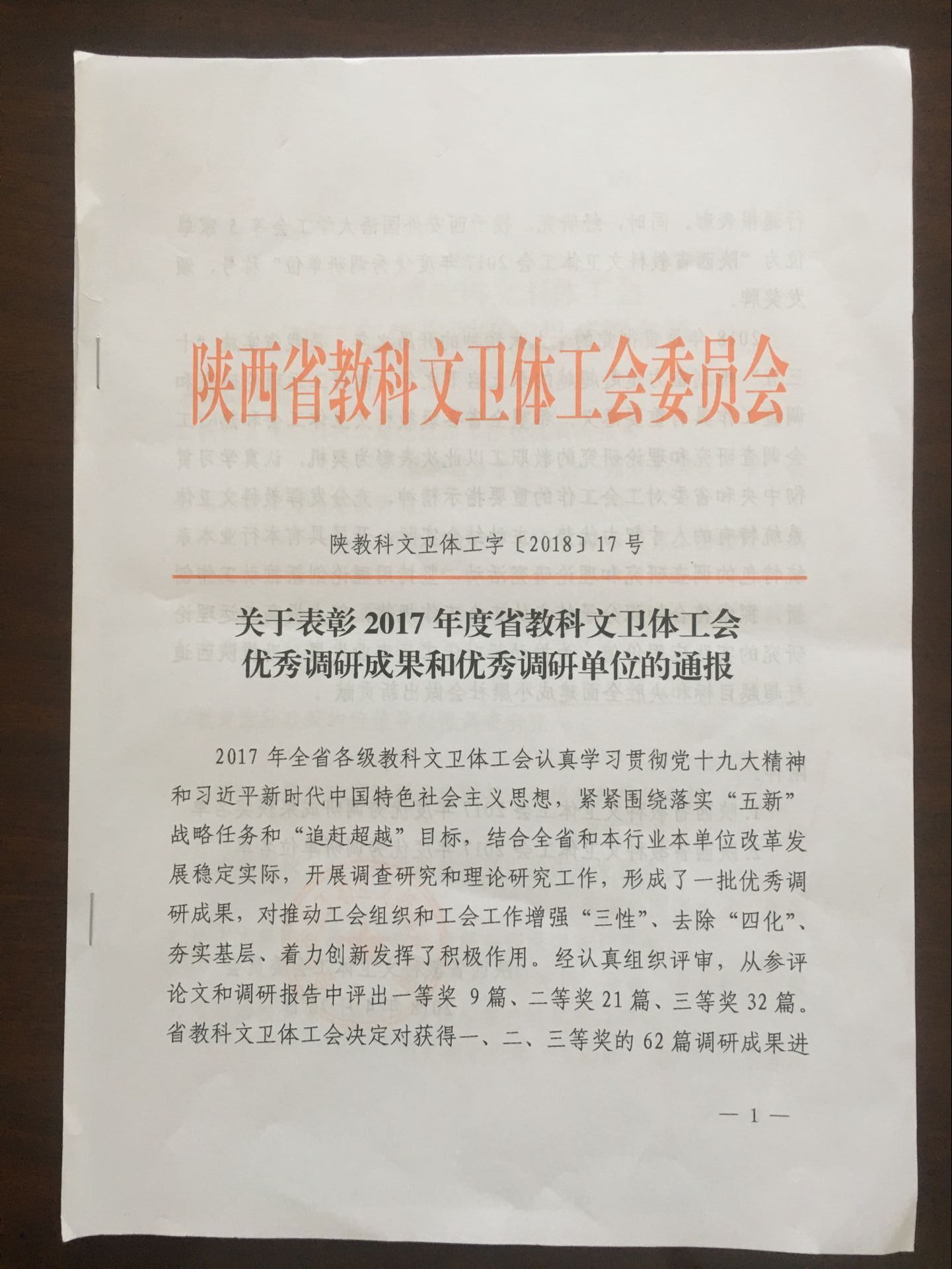 ,陕西省教科文卫体工会在全省教科文卫体系统工会女工干部培训班上,通报表彰了2017年度优秀调研成果和优秀调研单位的(陕科文卫体工字[2018]17号)。我院2017年工运理论研究硕果累累:工会主席、统战部长刘文青获优秀调研成果一等奖,段文杰和工会祁广科老师获优秀理论研究成果三等奖。刘文青同志出席培训开班仪式并代表学院上台领奖。至此,我院工运理论研究工作已经连续七年获得省教科文卫体工会通报表彰,这也是历年来我院工运理论研究工作获奖最多的一次。