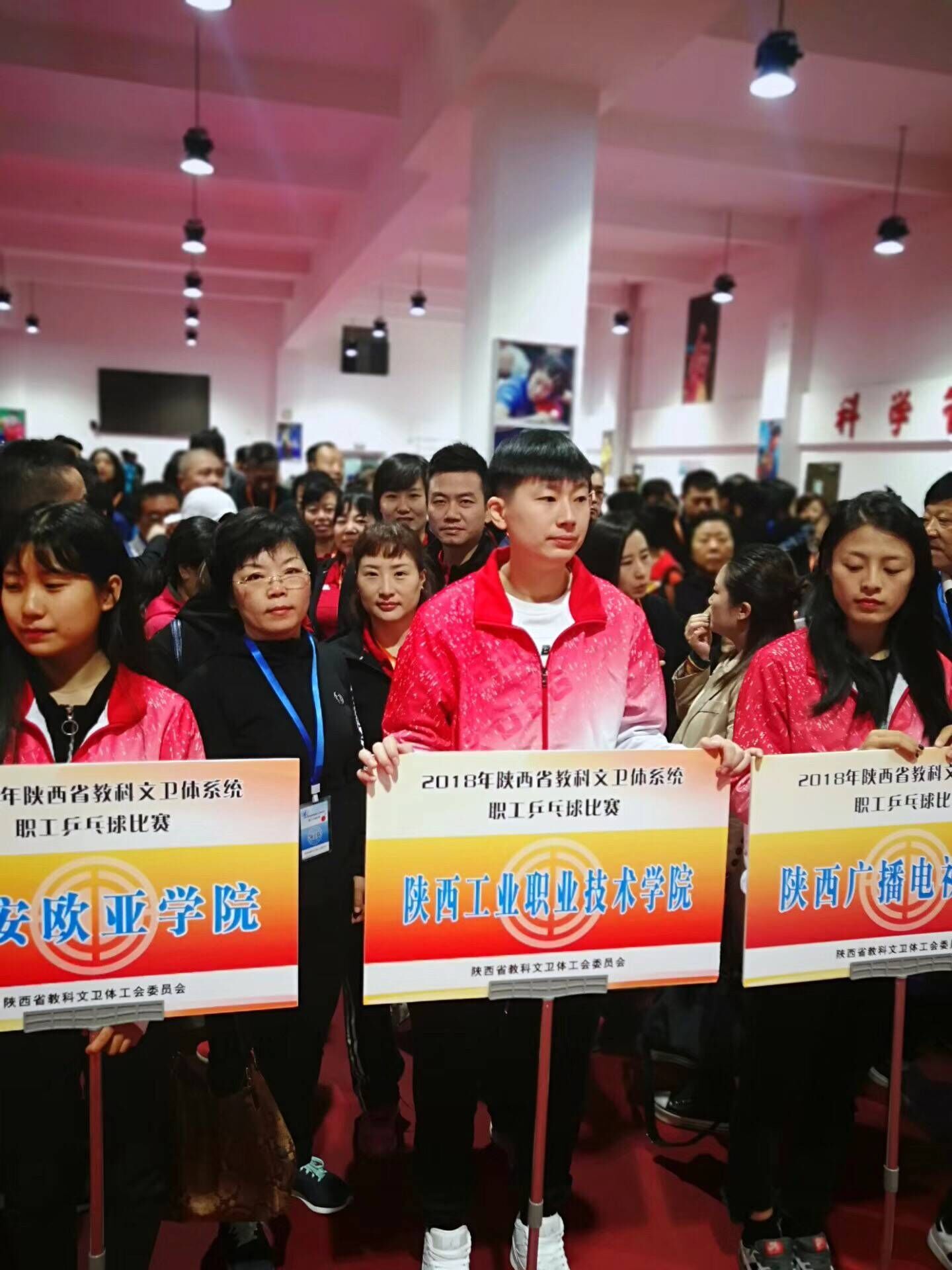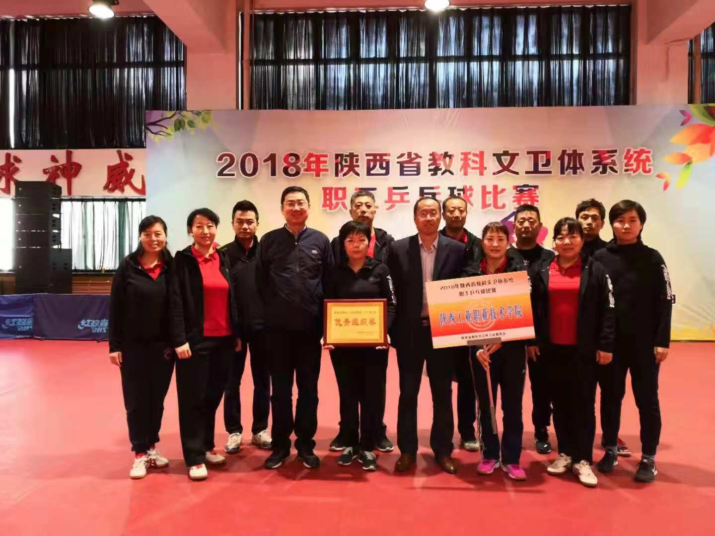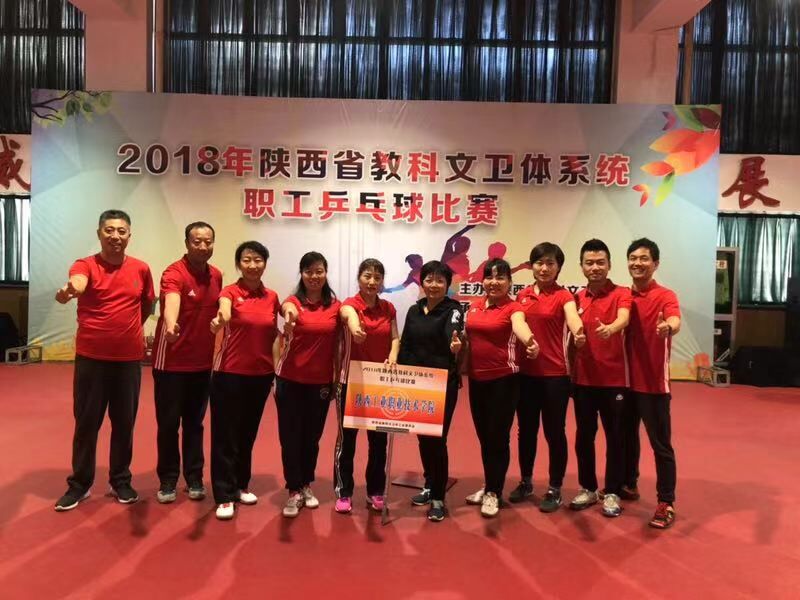 10月26日至28日,2018年陕西省教科文卫体系统职工乒乓球比赛在西安举行,我院工会主席、统战部部长刘文青带队,工会文体委员孙文杰任教练,杭挥天、李红科、张辉、袁夏莹等10名队员组成我院代表队参加了比赛。经过两个阶段激烈奋战,我院代表队以第二名的成绩从小组突围,并荣获优秀组织奖。刘文青同志代表学院领取了奖牌。