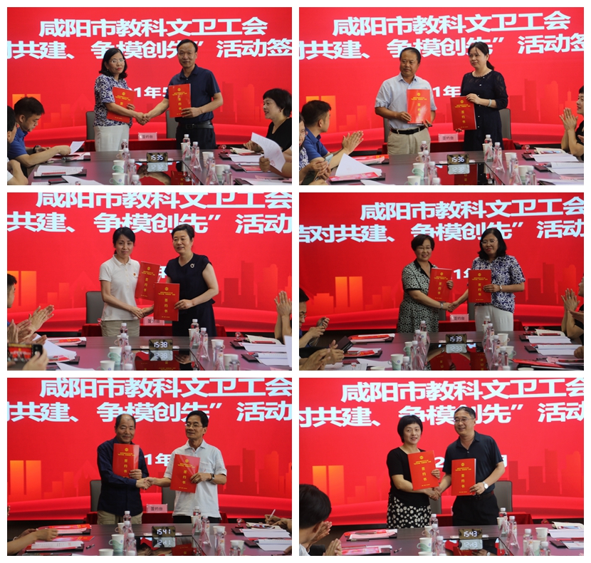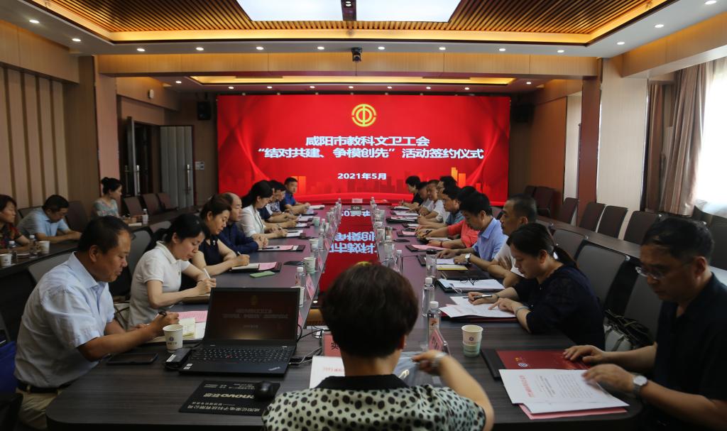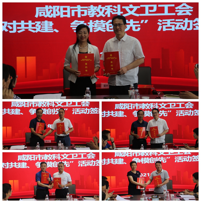 5月31日,咸阳市教科文卫工会“结对共建、争模创先”活动签约仪式在我校崇文南楼九楼第一会议室举行。咸阳市总工会党组副书记、常务副主席张静,市教科文卫工会主席杨勇方,我校党委副书记田昊、工会主席张彬出席了启动仪式。来自陕财职院、陕能职院、咸阳职院、市中心医院、市农科院等17家高校、单位的工会主席和职工代表参加活动。