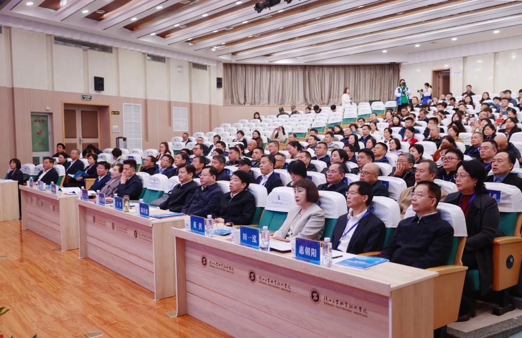 校长刘永亮以“融通‘四链’赋能 助推产改提质增效”为题,汇报了我校在助推产改方面的探索与实践。一是人才培养链赋能产改。通过“专业到课程、到师资、到教学、到准员工”多元组链,为产业发展提供人才支撑。二是科技创新链赋能产改。通过“平台到项目、到团队、到方案、到转化”多元组链,为产业发展提供科技支撑。三是职业培训链赋能产改。通过“平台到课程、到团队、到证书、到评价”的多元组链,为产业发展提供技能支撑。四是文化传承链赋能产改。通过“价值需求聚焦红色匠心,从理念到标准、到方案、到实践,再到推广”多元组链,传承工业文化、工匠精神,为产业发展提供文化支撑。
