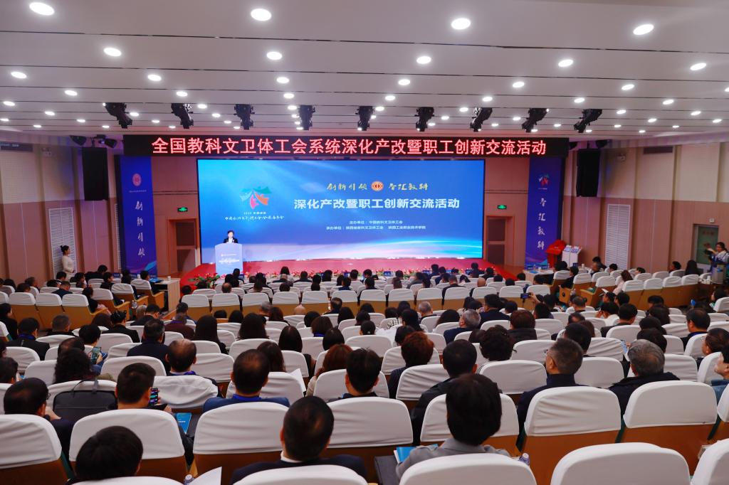 在深入学习贯彻党的二十届三中全会精神,贯彻落实中共中央、国务院《关于深化产业工人队伍建设改革的意见》之际,全国教科文卫体工会系统深化产业工人队伍建设改革暨职工创新交流活动10月21日至22日在我校举行。全国总工会党组成员、经费审查委员会主任蔡安辉出席活动并讲话,陕西省总工会党组书记、常务副主席王军,陕西省总工会党组成员、经费审查委员会主任樊树森,陕西省委教育工委、省教育厅二级巡视员董侠,中国教科文卫体工会兼职副主席、宁夏固原市职业技术学校副校长何桂琴,咸阳市人大常委会副主任、市总工会党组书记、主席田一泓,以及我校党委书记惠朝阳、校长刘永亮出席活动。活动由中国教科文卫体工会主席高洁主持。