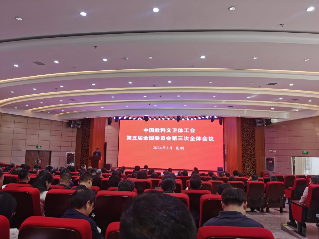 3月6日至8日,中国教科文卫体工会第五届全国委员会第三次全体会议在云南昆明召开。会议总结2023年工作,部署2024年任务。会上,教育部、科技部、国家文物局、国家卫健委、国家体育总局相关司局就本行业的新形势新任务和职工队伍建设新情况作专题交流。我校工会主席张彬以《彰显新时代工会组织服务产改的“职教担当”》为题做交流发言,围绕学校工会“聚焦产教融合全过程中产业与教育、学校和企业、育人与培训等难点问题,以‘产改’试点为抓手,以工会组织为纽带引领推进校企协同创新”的探索实践进行了汇报,与会代表对我校工会的特色亮点工作予以高度赞扬。