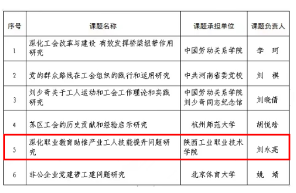 5月18日,全总工会理论研究会(中国特色社会主义工会发展道路研究会)公布了2023年度委托课题招标结果公告,校长刘永亮教授申报的《深化职业教育助推产业工人技能提升问题研究》获批立项公示。此项课题的获批是我校工会理论研究领域的重要突破。